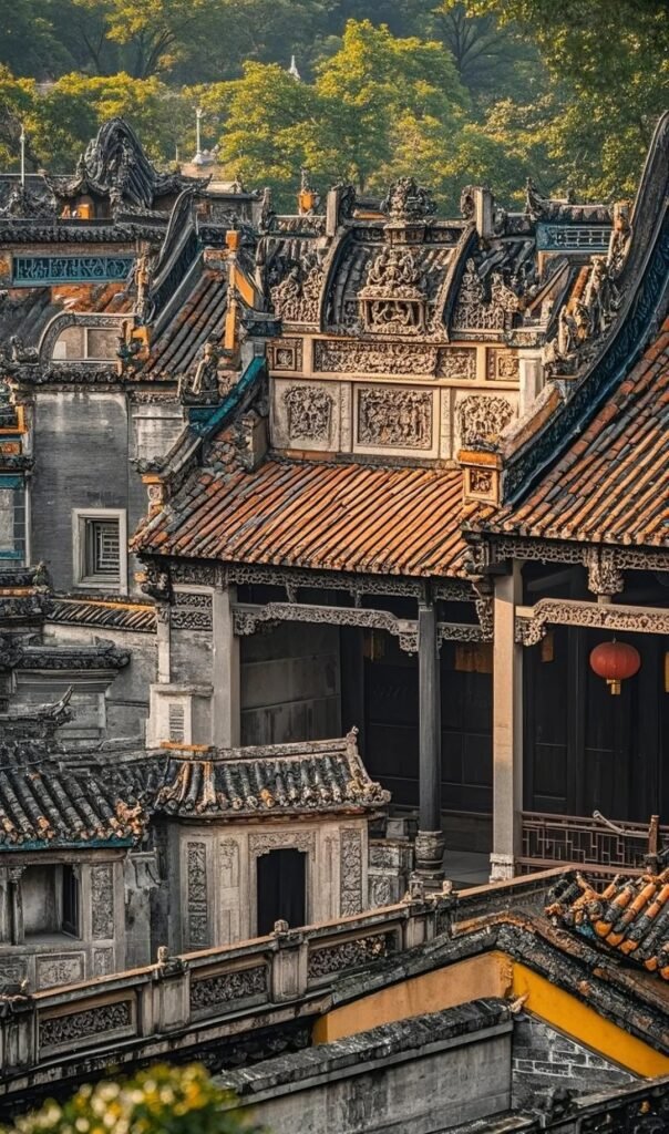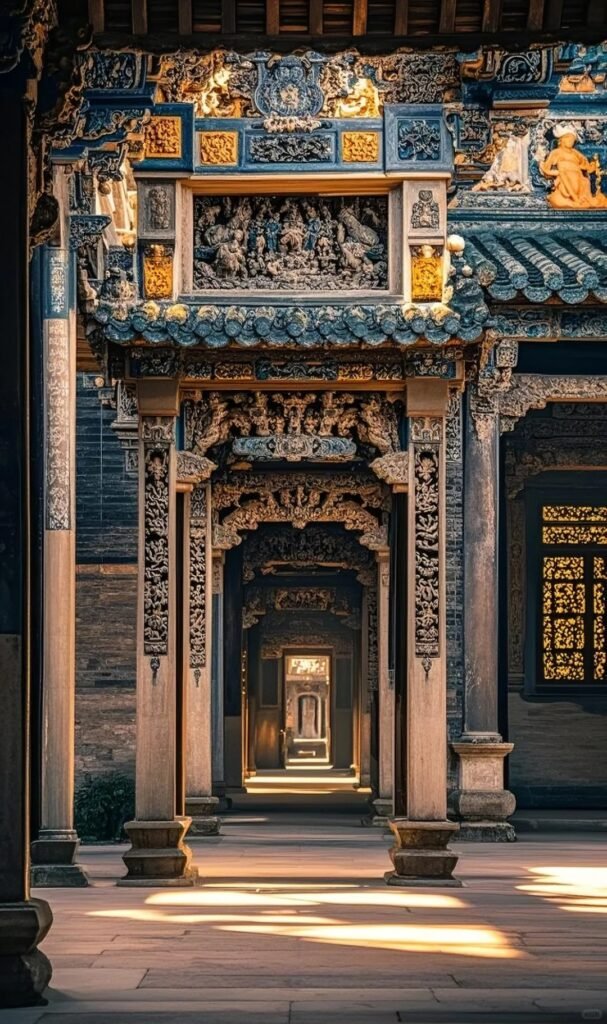 Spatial Rhythm: 6,400㎡ woodcarved ceilings depict warring Three Kingdoms heroes Light Play: 2.8m brick sculpture “Heroes Gathering” casts narrative shadows under subtropical sun Nature Integration: 15m ceramic phoenixes ride winds, while perforated iron panels channel breezes. UNESCO-listed as “Chinese Baroque”, yet every ornament encodes clan aspirations—rafters density = social status, ridge beasts = imperial exam ranks.