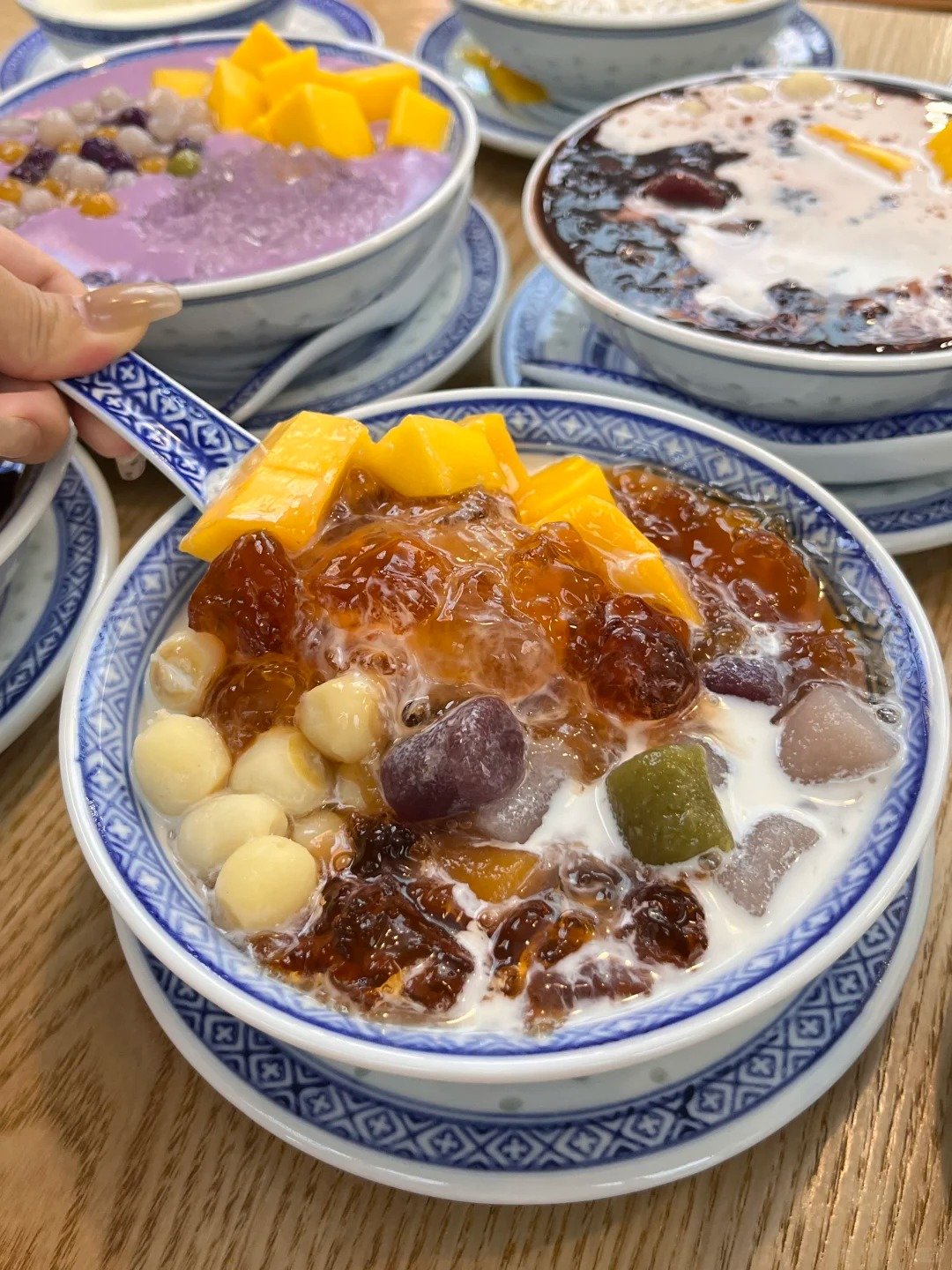 Guangzhou sweet soups are characterized by meticulous craftsmanship, using natural and diverse ingredients. From traditional double-layer milk custard and ginger milk curd to innovative mango pomelo sago, they are available hot or cold. Emphasizing textural layers, they are either dense and rich or refreshing and smooth, infusing Lingnan health-preserving wisdom into sweetness. They are both delicious snacks and a part of daily rituals.